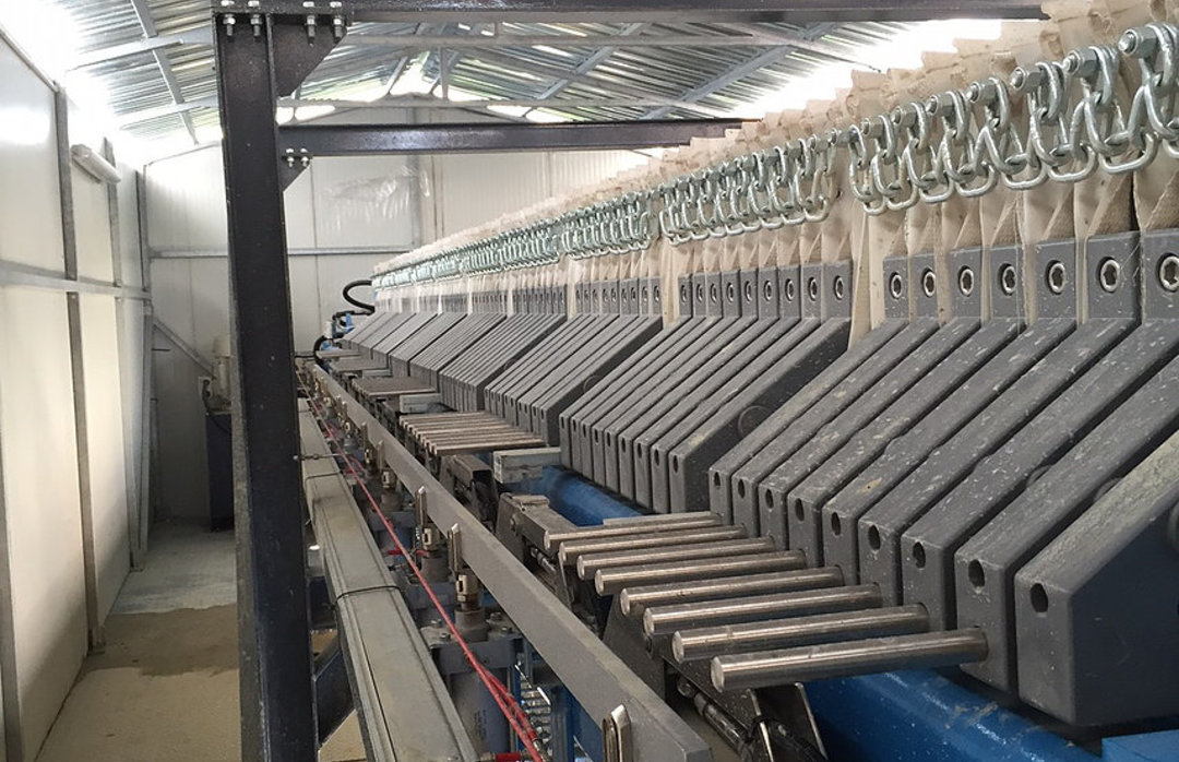 Der Schlamm wird mittels Kammerfilterpresse ausgepresst. Der trockene Kuchen kann problemlos deponiert werden.