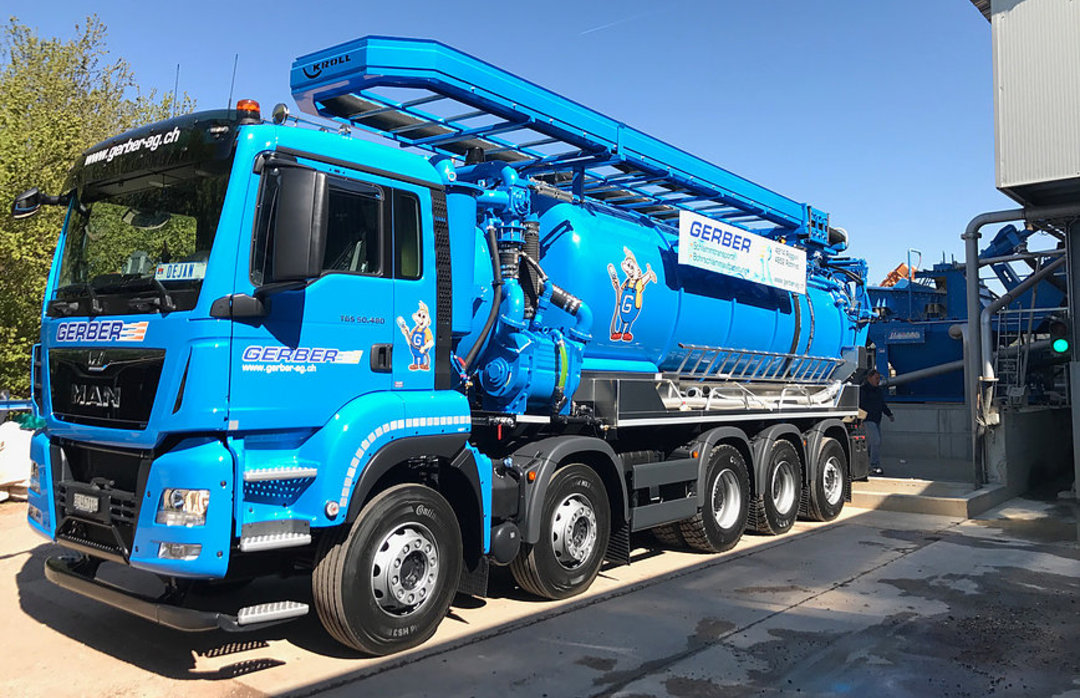 Für den effizienten Abtransport stehen Grossraum Saugfahrzeuge mit bis 19m3 Inhalt zur Verfügung.